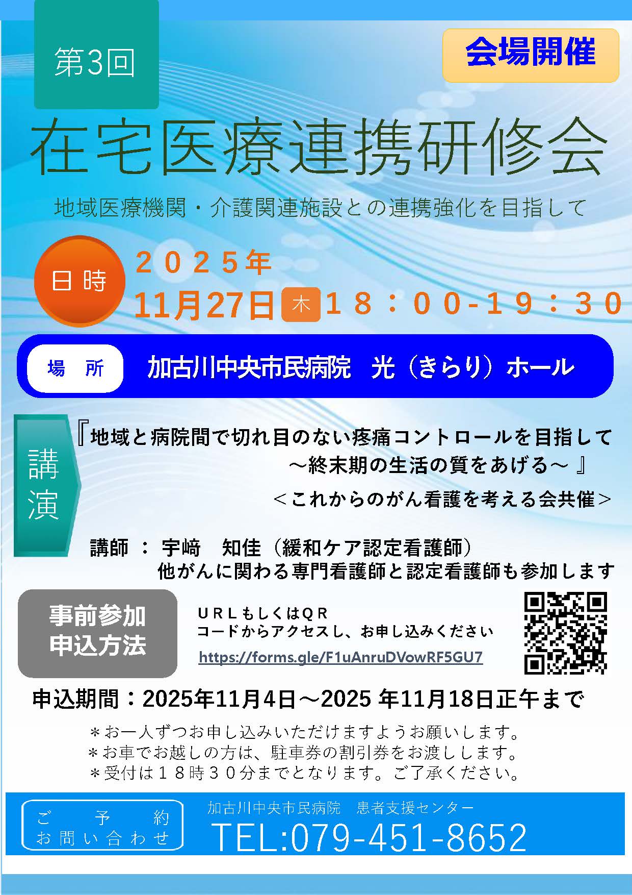 | 開催場所 | 加古川中央市民病院 光(きらり)ホール |