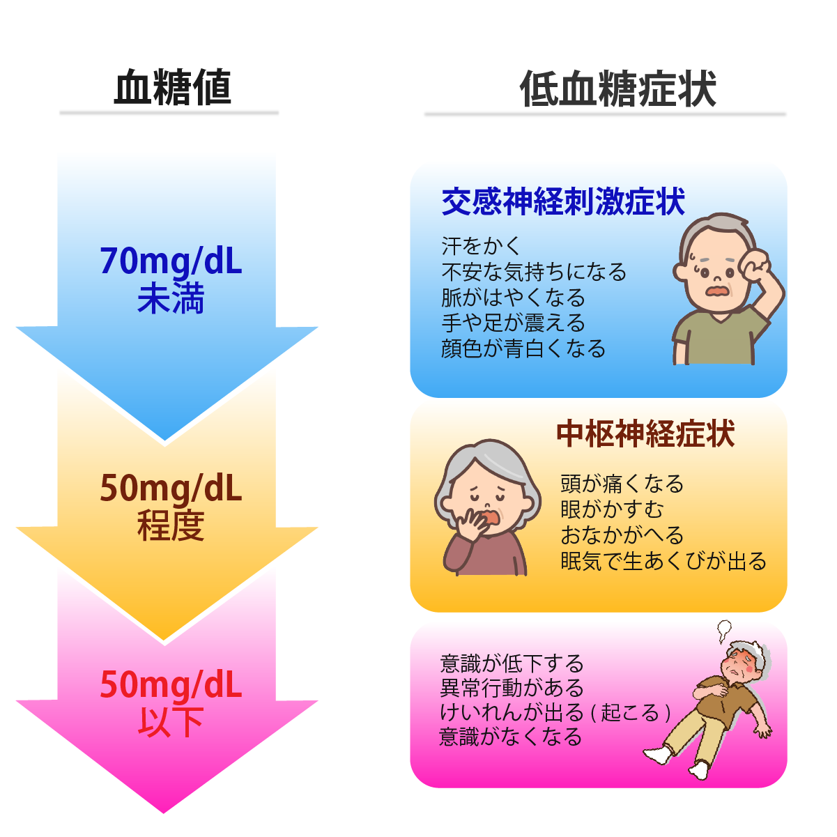 低血糖は重篤になると命にかかわるため、正しく対応することが大切です。