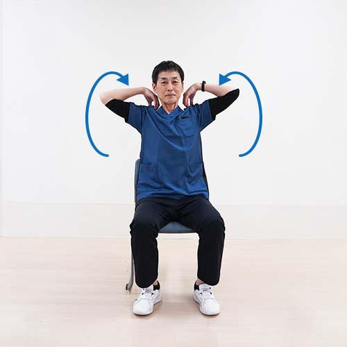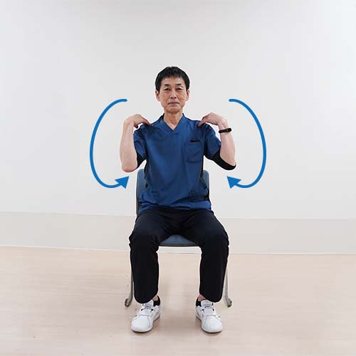 - ゆっくりと大きくひじで円を描くように回します