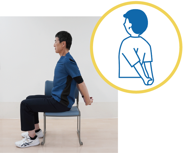 - 両手を腰の後ろで組みます